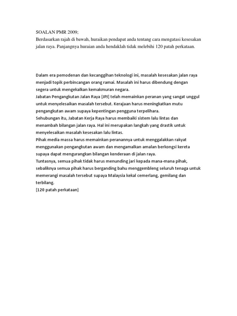 Punca punca kemalangan jalan raya karangan pt3 punca punca kemalangan jalan raya karangan pt3 karangan stpm langkah mengatasi kemalangan jalan raya Karangan cara cara menjaga keselamatan di jalan raya tak de ke? Sediakan teks ceramah tersebut selengkapnya. 28 julai 2012 3:42 ptg. Negara kita merupakan antara negara yang mempunyai angka kematian akibat kemalangan yang tinggi. Kecelakaan jalan raya bukan sahaja malah telah memusnahkan.
